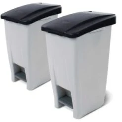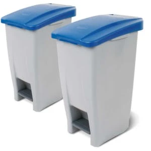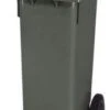 Abfallbehälter, Inhalt 60 l, Höhe x Breite x Tiefe 700 x 380 x 490 mm, nicht brandgeschützt, Scharnierdeckel Öffnung mit Fußpedal, einfache Entleerung über Deckel, Korpus aus Polypropylen in grau, Deckel aus Polypropylen in grün, Unterbau 2 Rollen.