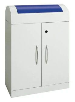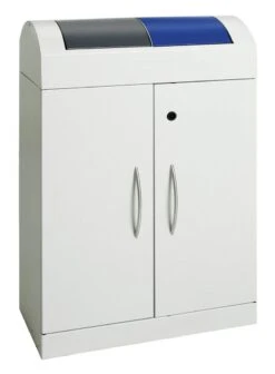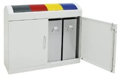 Formschöner Schranksammler, aus vollstĂ€ndig verzinktem QualitĂ€tsstahlblech gefertigt und hochwertig strukturiert pulverbeschichtet. Im BehĂ€lterinnern sorgen vier InnenbehĂ€lter aus ebenfalls verzinktem Stahlblech fĂŒr optimale Abfallaufnahme. Das Fassungsvermögen betrĂ€gt 4×45 Liter. Die AbfalltĂŒten werden durch eine frontseitig eingelassene und per Vierkantschloss verschlieĂbare FlĂŒgeltĂŒre entnommen (VierkantschlĂŒssel wird mitgeliefert). Die selbstschlieĂenden Einwurfklappen wirken feuer- und geruchshemmend. Mit zwei ergonomischen Griffen aus Edelstahl an den FlĂŒgeltĂŒren. Frontseitig sorgen 2 StellfĂŒĂe fĂŒr den Ausgleich bei Unebenheiten. Der BehĂ€lter wird vollstĂ€ndig in Deutschland gefertigt und wird in einer TĂV-zertifizierten ProduktionsstĂ€tte hergestellt. Der Hersteller gewĂ€hrt eine Garantie von 5 Jahren. Farbgebung Korpus: lichtgrau RAL 7035, Farbgebung Einwurfklappen: anthrazitgrau RAL 7016, feuerrot RAL 3000, signalgelb RAL 1003, enzianblau RAL 5010.