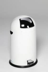 Edelstahl-Tretabfallbehälter, Inhalt 22 l, Höhe x Durchmesser 640 x 355 mm, Klappdeckel Öffnung mit Fußpedal, Innenbehälter aus Stahl verzinkt, Korpus aus Edelstahl, Deckel aus Edelstahl, Unterbau Kunststoff-Bodenring.
