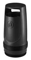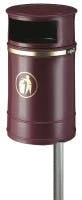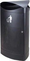 Runder, Kunststoff AuĂenbehĂ€lter fĂŒr Wand- oder Pfahlbefestigung, mit Inneneimer aus Metall.