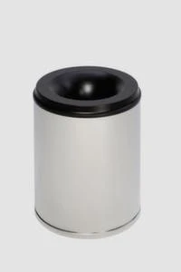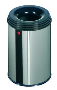 Edelstahl-Papierkorb, selbstlöschend, Inhalt 15 l, Höhe x Durchmesser 370 x 250 mm, mit Löschkopf, Kopfteil aus Stahl mit Pulverbeschichtung in schwarz, Korpus aus Edelstahl poliert.
