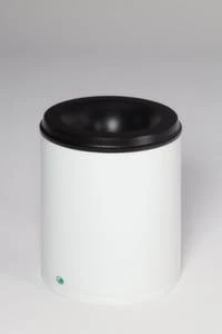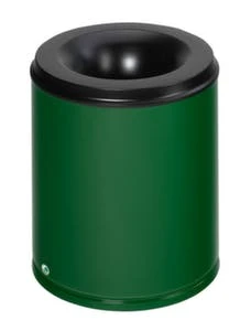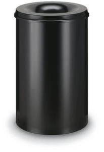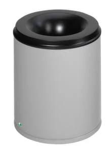 Papierkorb, selbstlöschend, Inhalt 80 l, Höhe x Durchmesser 560 x 465 mm, mit Löschkopf, Kopfteil aus Stahl verzinkt mit Pulverbeschichtung in schwarz, Korpus aus Stahl verzinkt mit Pulverbeschichtung in rotaxsilber.