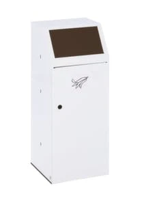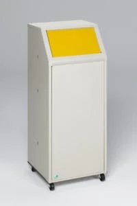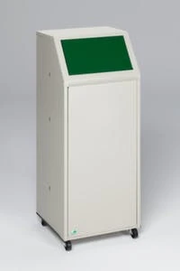 Wertstoffsammler für Restmüll, Inhalt 1 x 69 l, Höhe x Breite x Tiefe 1050 x 400 x 400 mm, Einwurfklappe Öffnung manuell, selbstschließend, Innenbehälter aus Stahl, einfache Entleerung über Klappe, Korpus aus Stahl mit Pulverbeschichtung in RAL7032 Kieselgrau, Deckel aus Stahl mit Pulverbeschichtung in grau, Unterbau 4 Lenkrollen, Lieferumfang inkl. Aufkleber zur Wertstofftrennung.